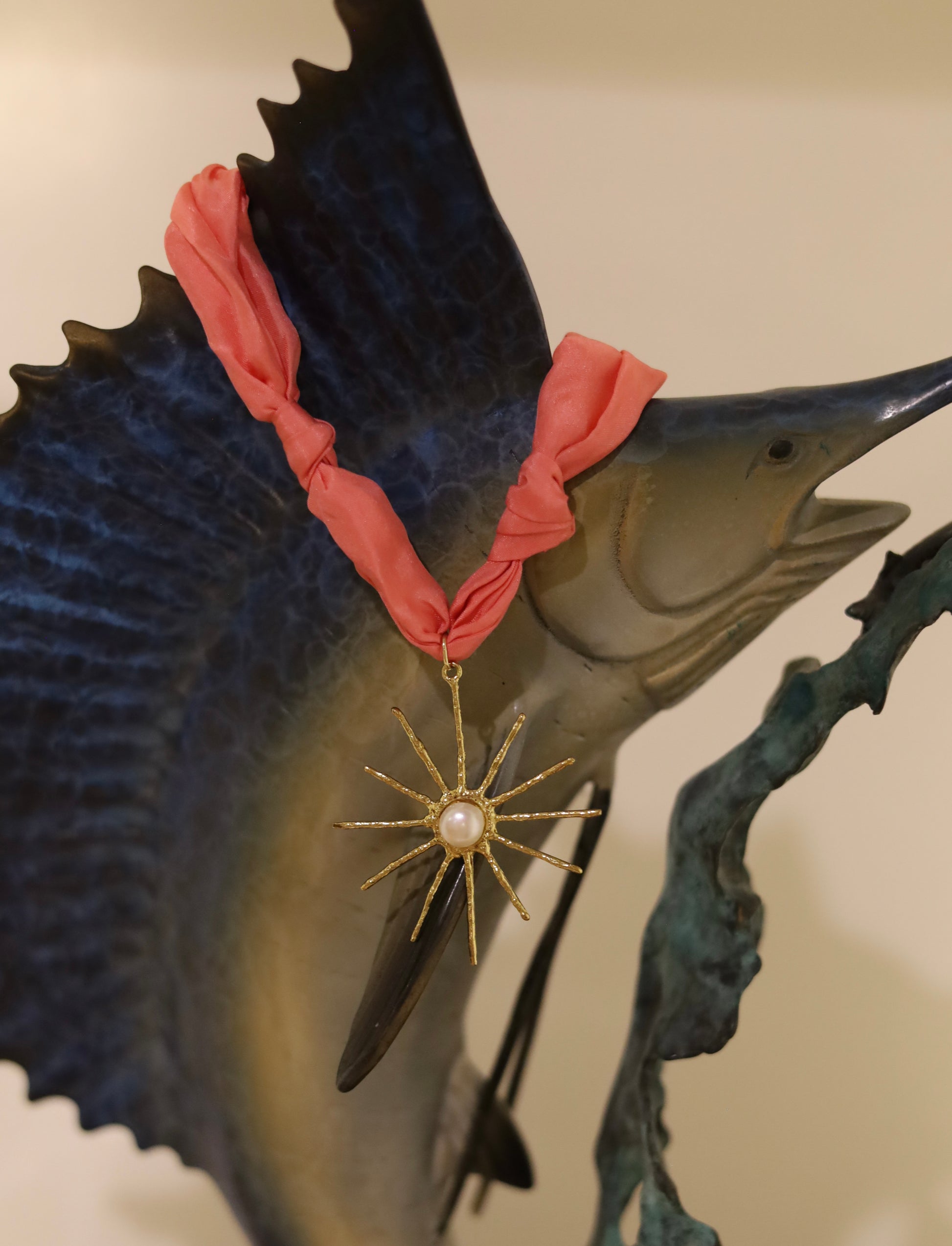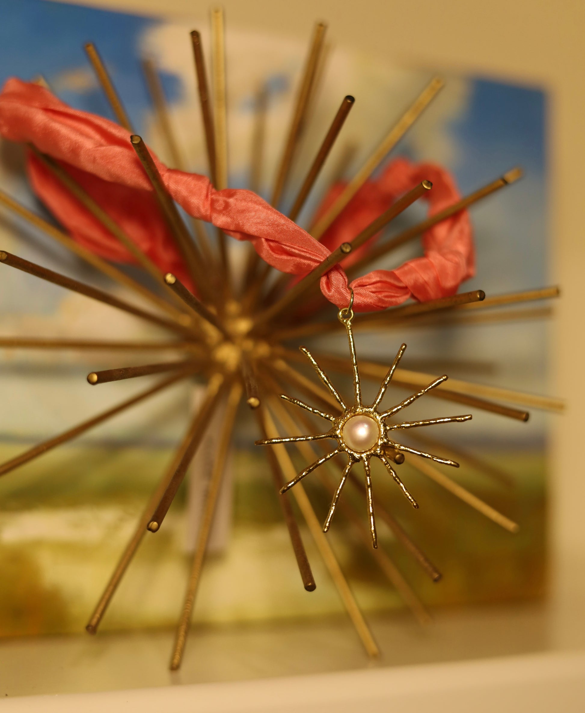 100% Silk Scarf with clasp paired with natural gold filled sun beam pearl pendant
