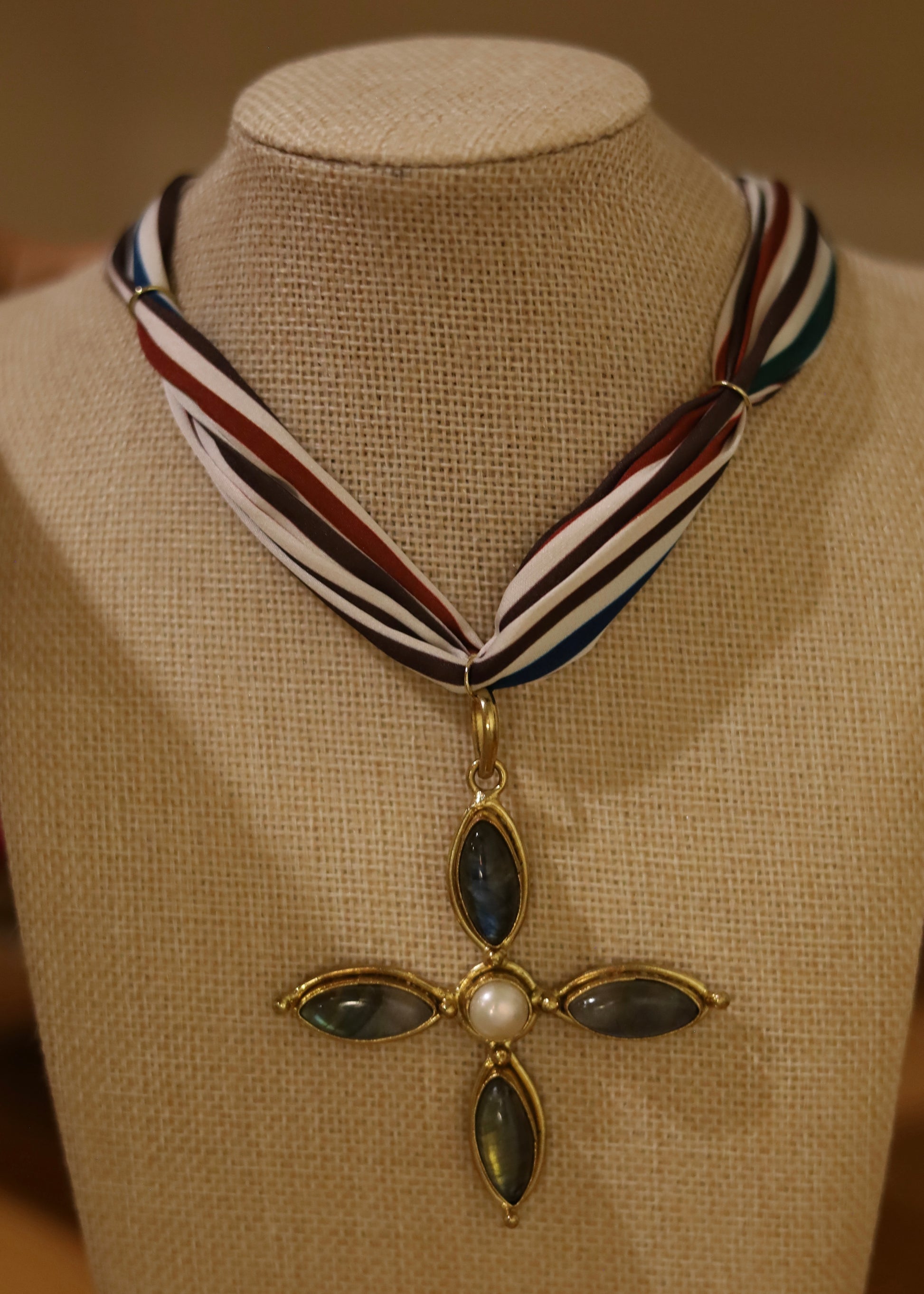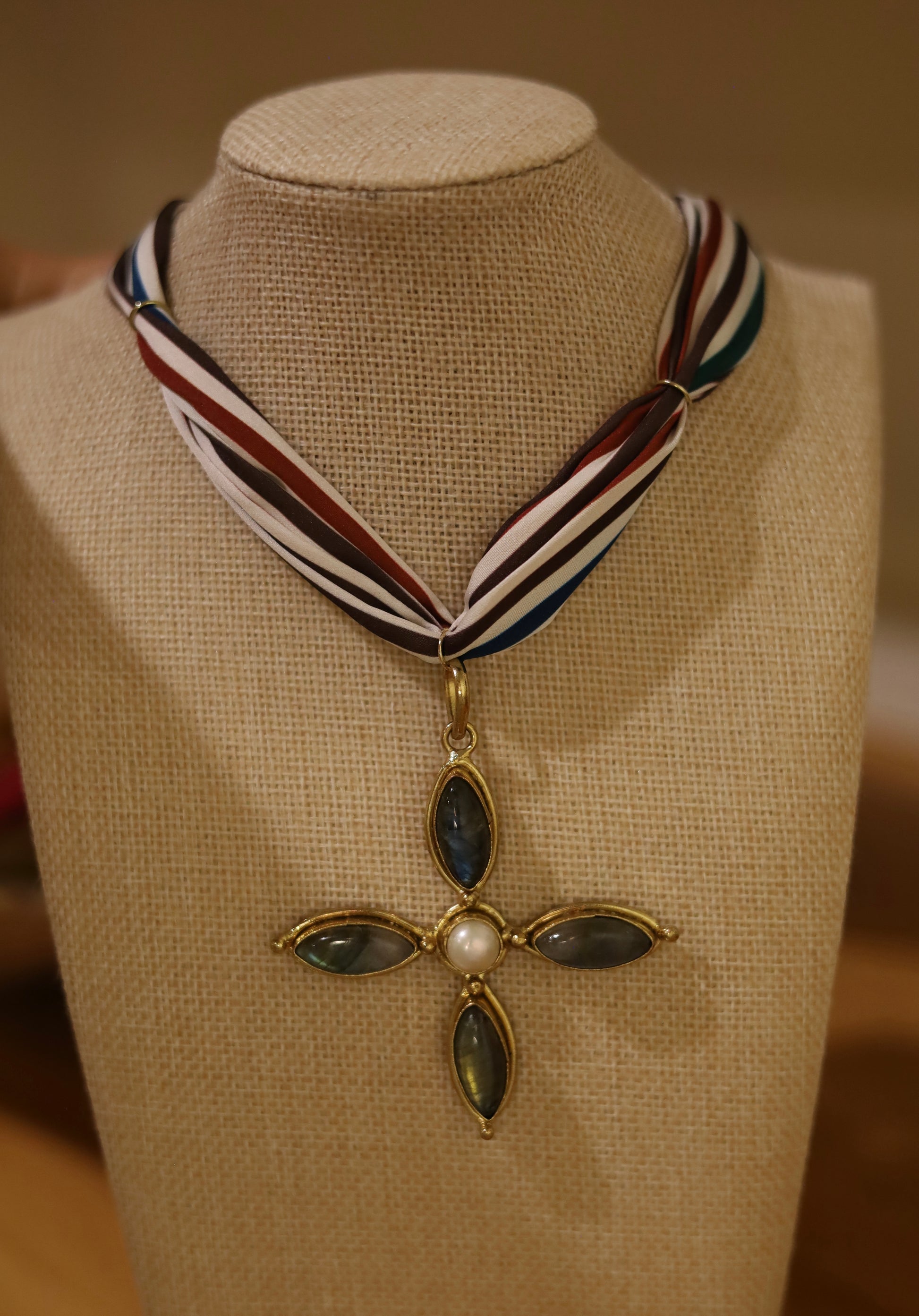 Gold filled high-quality natural Labradorite stone with a 100% silk scarf