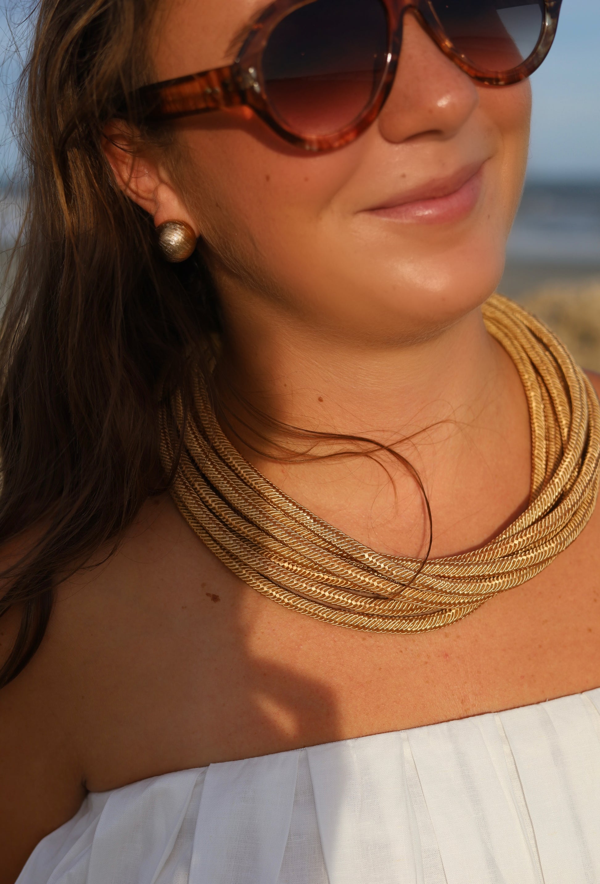This 8-stranded rope necklace adds a cute touch to any outfit. Made with tan rope, it's perfect for a bold yet stylish look.