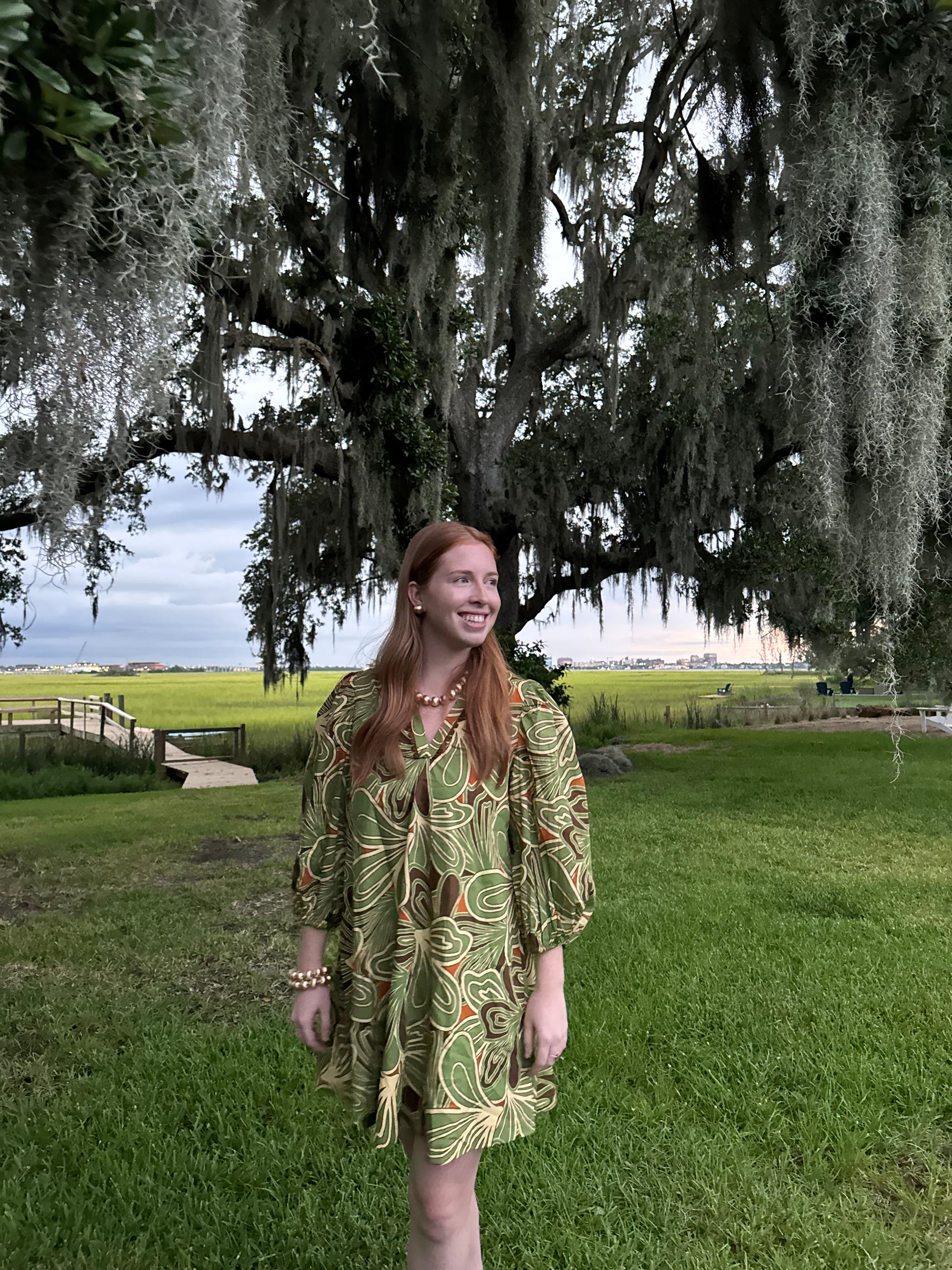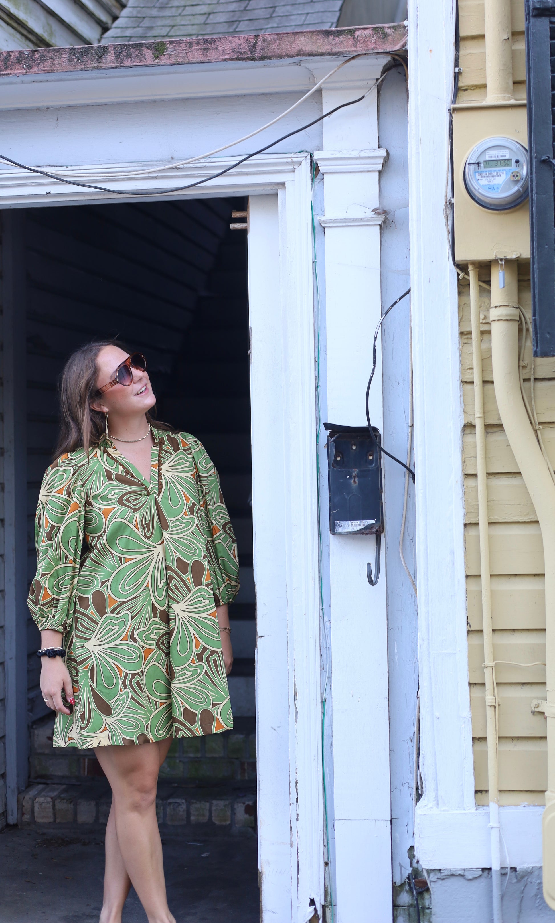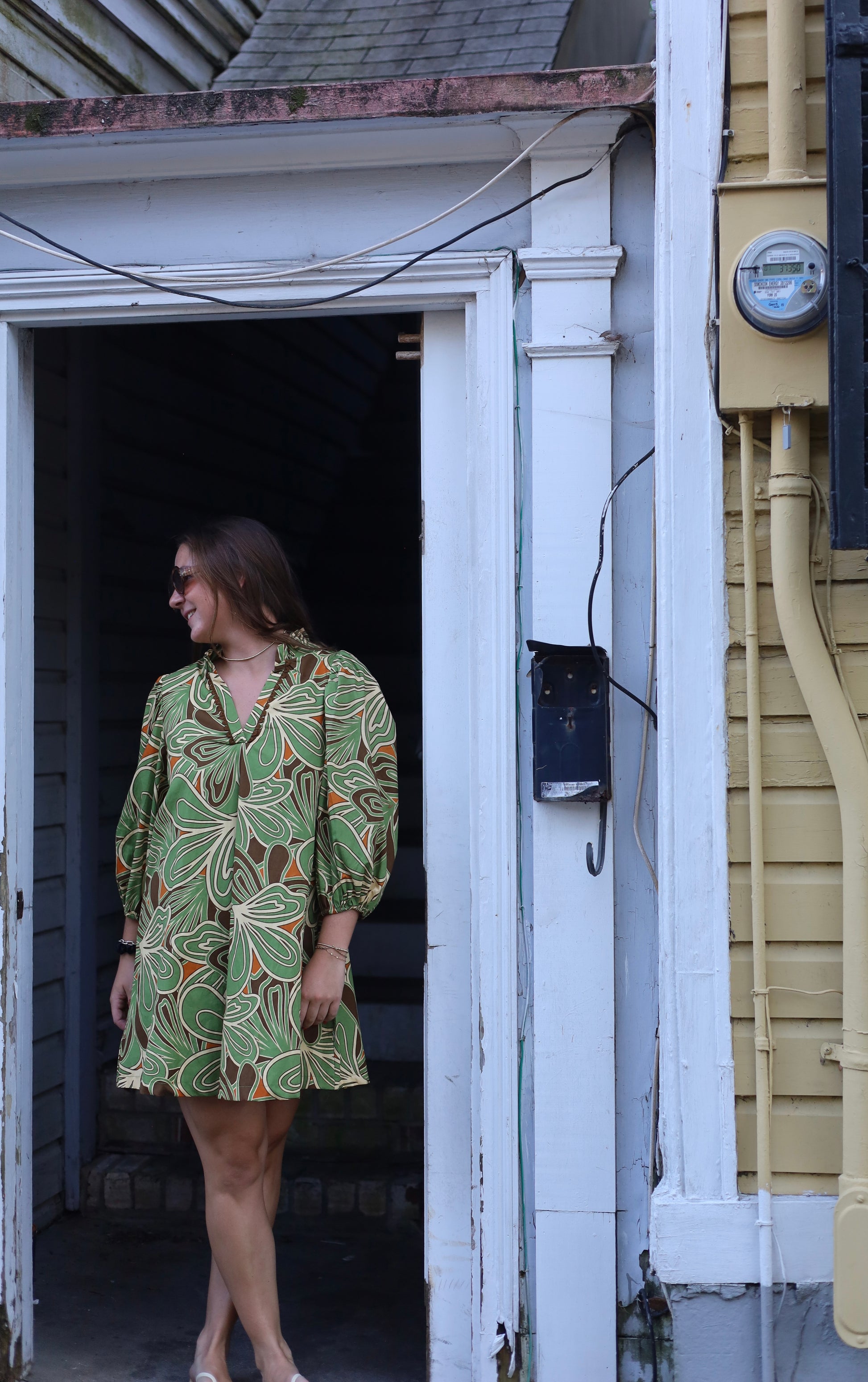 Treat your fall wardrobe with this puff sleeve printed mini dress! The Olivia dress features a scalloped v neckline, 3/4 puff sleeves and a relaxed A-line silhouette!